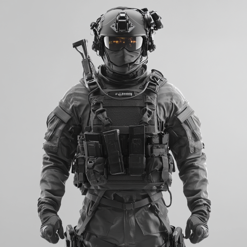 Anim style illustration, profile picture. Future soldier in a Power Ranger helmet. Tritone, black, white, and blue-green. Dark background. --style raw
