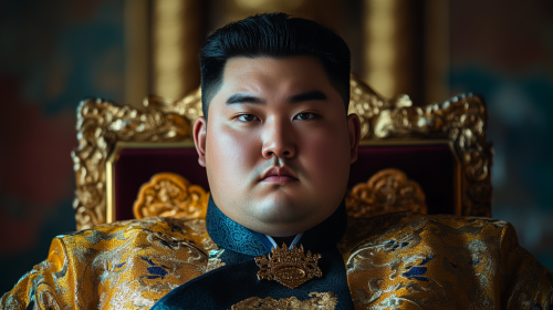 A portrait of a handsome royal prince from North Korea, overweight , vivid, portrait shot, Photorealistic, Sony A7 IV, 85 mm lens, f/2.8 aperture, 1/100 ms shutterspeed, --ar 16:9 --v 6.1