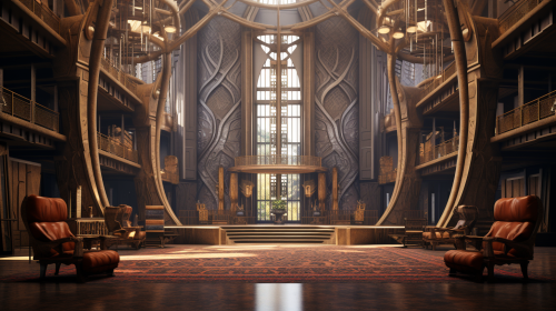 An African Inspiried Architecture from 16th Century of a parlement, Wakanda, Realistic, High Definition, wide shots --ar 16:9