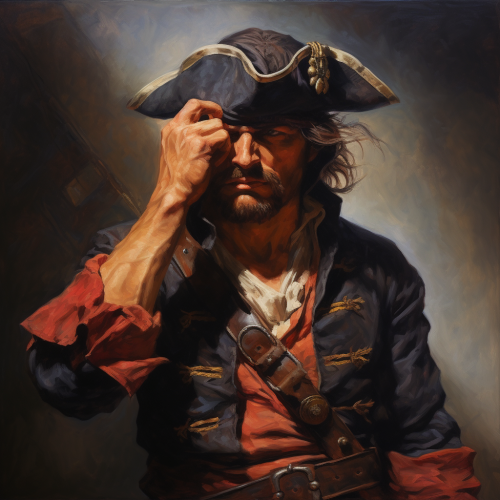 15th century character, 35 years old, adventurer, with long curly dark brown hair, 16th century shop background, he is looking funny and very arrogant , dynamic pose, in the style of realistic fantasy artwork. --no sword