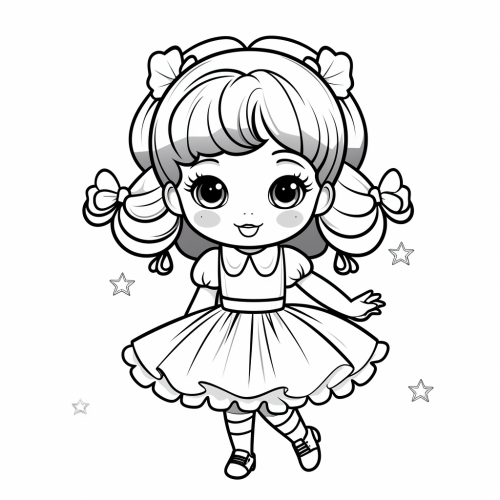 /******coloring page for kids, very simple simplified, cute little ballerina girl dressed coquette style
