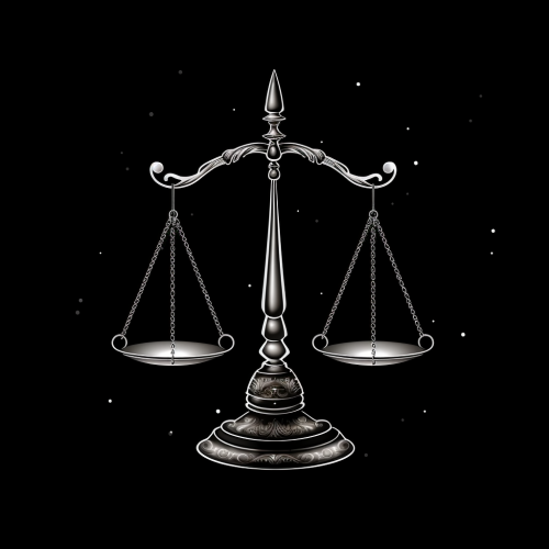 simple cartoon white scales of justice dramatically tilted on a black backgorund