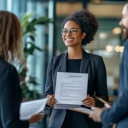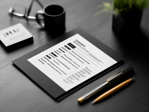 Generate a digital art for A digital art scene showing a modern resume with a prominent skills section at the top. The resume is highlighted with a sleek, professional design, and the background features abstract elements in black to emphasize the importance of visibility. --ar 1:1