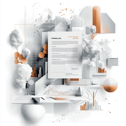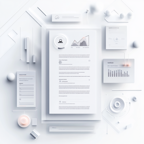 Generate a digital art for A digital art scene showing a professional resume with highlighted bullet points. The bullet points are achievement-driven, with key metrics and KPIs prominently displayed. The background is a clean, modern workspace. Use light gray color for the background. --ar 4:3