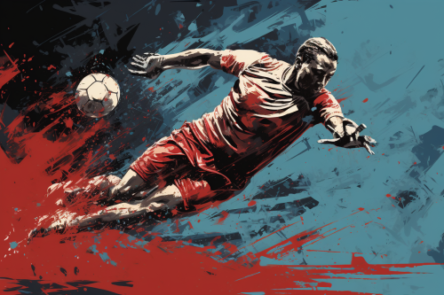 abstract red and white color scheme on black soccer goalie diving to catch a ball --ar 3:2 --s 250