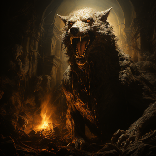 Graveyard, night Werewolf emurging from a grave that is a portal to hell --s 750 --v 5.2