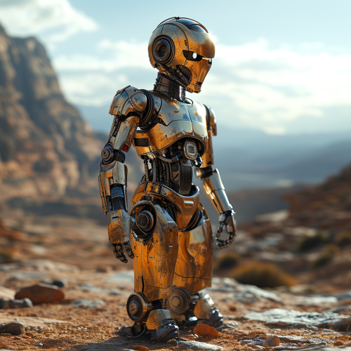 A Strong Droid in Retro Alien-Inspired Outfit