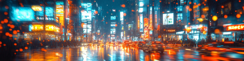 a modern city overwhelmed with advertisting bilbourds and video screen promoting various marketing messages, including YouTube, cinematic, bokeh --ar 4:1 --s 750