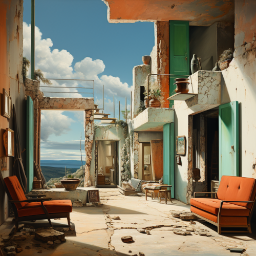 interior que te haga sentir ansiedad y soledad, con bustos grecoromanos, pintura metafisica inspirado usando paleta de colores de giorgio de chirico --s 750 --style raw