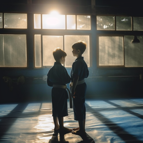 boys wrestling, acceptance, Brazilian bjj, in the gym, competition, light from the windows, real photo