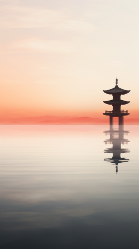 japanese architecture sunset, japanese culture, white background, samurai, minimalist, wisdom, calm, 16k super real photo --ar 9:16