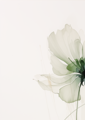 floral painting with a green flower on a beige background, in the style of minimalist ink wash, dark green and light gray, body casts/body prints, lith printing, gutai group, naturalistic renditions, aquarellist --ar 91:128 --v 5.2
