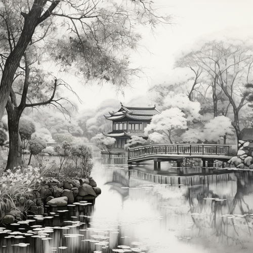 [[4817352130812710913]] Ink wash painting, Suzhou gardens, black and white. --v 5.2