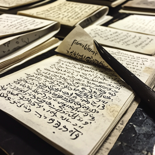 corporate portrait, man in suit in office setting, behind desk, his walls are covered with framed awards, his desk is cluttered, wide shot, ultra wide shot, office is cluttered, on the wall are framed images of occult happenings, 35mm film photo --ar 3:2 --v 3