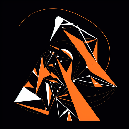 in flat design, negative space, geometric, asymmetrical forms illustration, black background, in the syle of orange and white, a shoes --v 5.2 --s 0
