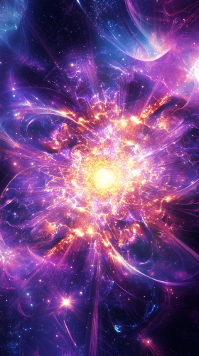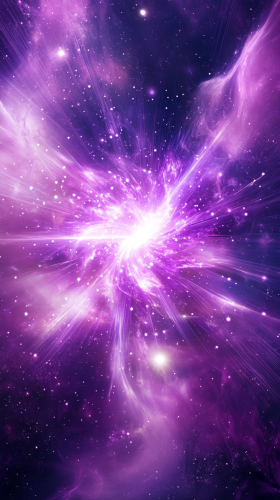 This image of an aura glowing like summer sunlight in vibrant purple hues, highlighted with glowing light effects. It is a symbol of spiritual depth, intuition, insight and a warm glow around you. The aura is surrounded by radiating beams of light, stars and glowing energy, giving a sense of spiritual depth and cosmic connection. Carrying this image will increase your luck. --ar 9:16