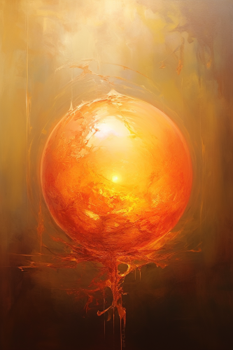 a gigantic hovering magical warm glowing orange sphere with beautiful swirling details inside, eminating warmth and love through visible energy rays, centralised in the frame against a bright neutral background, meditative and biblical --ar 2:3 --v 5.0