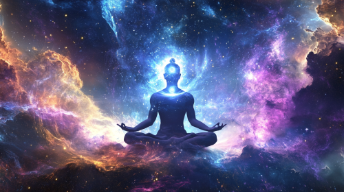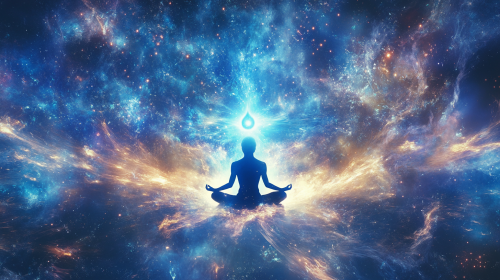 Background The background can be a galaxy, deep space or a universal wave of energy. This offers a broad perspective to reflect the theme of spiritual awakening. A burst of energy in shades of blue, purple and gold can symbolize consciousness and awareness. Main Image: In the center may be a meditating figure or the symbol of the third eye. The third eye emphasizes the main theme of the video as it represents awareness and spiritual opening. There may be energy waves or aura rings around the figure. Color Palette: Blue, purple, gold and white tones can be used. These colors symbolize spiritual consciousness and awakening. Touches of gold represent divine power and inner enlightenment, while white can signify purity and purification. Symbols and Details: Symbols such as eyes, lotus flowers, or bursts of light can be added. These make the video's themes of spiritual awakening, awareness and energy even more visually powerful. --ar 16:9