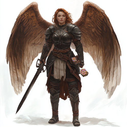 Black-winged demon warrior in the desert, blond long hair, orange eyes, holding a sword, behind the ancient ruins, hyperrealistic, high detailed, cinematic light, --ar 16:9 --v 6.0 --s 750