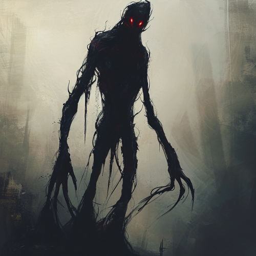 photo realistic. A Shadowclaw Titan. A massive giant with pitch-black fur and glowing red eyes, resembling a cross between a grizzly bear, a panther, and a humanoid figure. It prowls the night, silently hunting its prey.