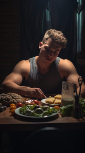 person recovering from hard exercise by eating a healthy meal --ar 9:16