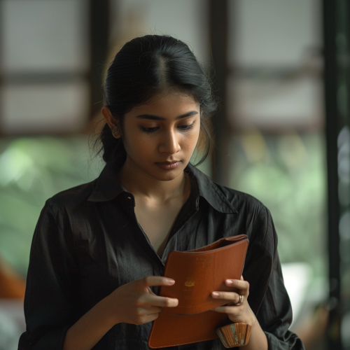 Real-life image of a financial advisor with a neutral and professional expression, seated at a clean desk, with organized documents, representing an unbiased and supportive approach. Photorealistic, realistic photo, 8K resolution --ar 3:2 --v 6.1 --style raw