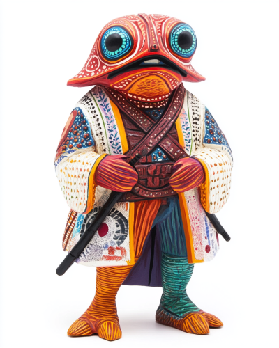 Admiral Ackbar as an alebrije, bright colors, iconic pose, carved out of wood, hand painted with alebrije patterns, seamless white background --ar 4:5 --v 6.1