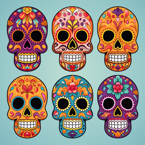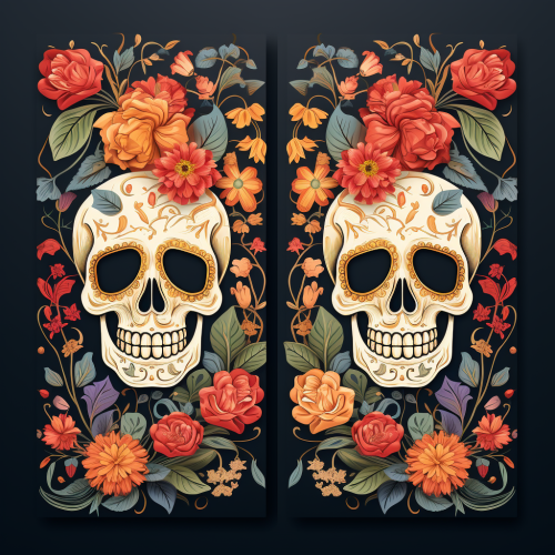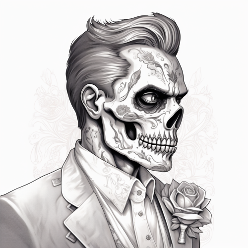 day of the dead, men, male, profile view, linework style, line art, minimal shading, nice details, illustration