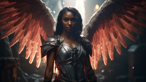 a small dark-skinned fairy cleric with wings, a tiny fairy cleric with dark skin, dungeons & dragons, high fantasy setting, cinematic lighting, wide angle, 4k real --no children, child, kid --ar 16:9
