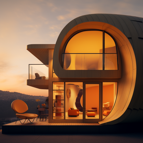 capsule house, Louis Khan style, sharp Angle, architectural photography, Golden hour.