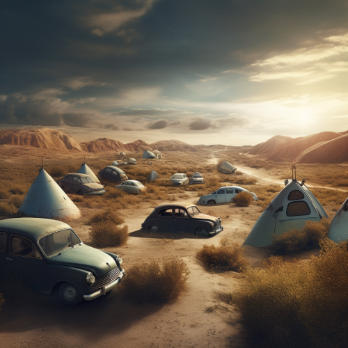 abandoned parking on an alien landscape imagined by Salvador dali, photorealistic professional photography --v 5.0