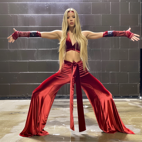 Screengrag from the 1950s film Super panavision 70. Retro in color. Jason Lee Scott (Red Ranger): Portray Jason in a dark crimson cloak with ornate silver patterns, wielding a flaming sword. The backdrop features a shadowy forest with glowing runes etched into the trees. 9:16