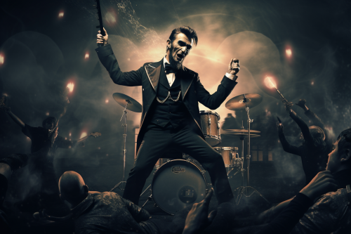 Abraham Lincoln with a rockband singing on the moon, earth in the background, digital art --ar 3:2