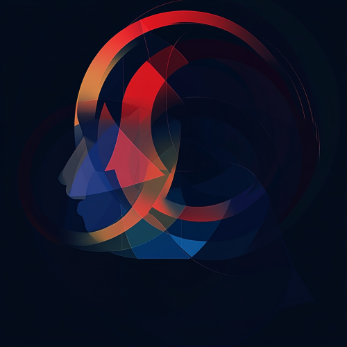 A diagrammatic portrait representation of A diagrammatic portrait illustrating the FizzBuzz challenge. The image shows a sequence of numbers from 1 to 100, with multiples of 3 highlighted in one color, multiples of 5 in another, and multiples of both 3 and 5 in a third color. The background is primarily navy blue. --ar 1:1 --quality .5