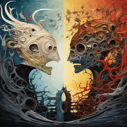 the greek concept of logos represented as abstract art drawn in the style of a 1960s engineering diagram