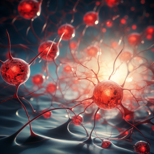 organic cellular life that looks like a gigantic neuronal network in an exoplanet landscape, abstract, red sun, new form of beauty, minimalist, quantum scientific rendering