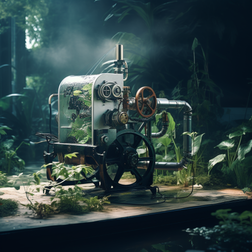 Abstract artwork illustrating the development stage of innovation, featuring three small alternative versions of a hydraulic pump product displayed side by side at the center, each in an early draft form with abstract geometric shapes and less precise lines, arranged following the Fibonacci pattern. Instead of a stark white background, subtle flow patterns symbolize the fluid dynamics integral to the pump's design, enhancing the composition with steel blue (51,102,153), grey (201,201,201) tones, accented by minimal orange (255, 87, 31). Over this detailed backdrop, text "DRAFT" is stamped in big red letters, boldly crossing the image to emphasize the provisional and exploratory nature of these designs. Black textual elements, styled as a technical drawing, hint at the iterative design process and exploration of different possibilities. This piece captures the dynamic process of development, guided by the Fibonacci sequence for balance and focus. Created Using: draft technical drawing aesthetics with flow patterns, Fibonacci placement, minimalist color focus with variations, bold "DRAFT" overlay, textual narrative of development, hd quality, natural style --ar 3:2 --v 6.0