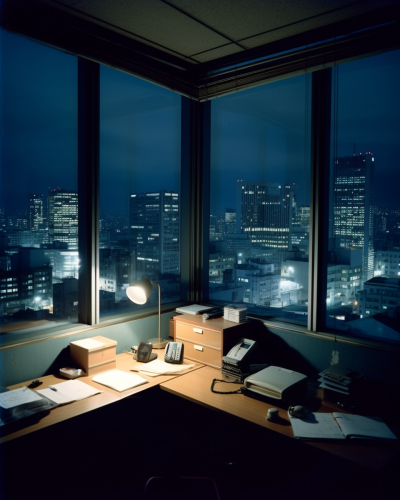 skyline of a city at night, in the style of vhs, shige's visual aesthetic style, blink-and-you-miss-it detail, naoko takeuchi, experimental videos, birds-eye-view, cryptidcore, illustration style by glen murakami's 1999 'batman beyond' animated series, retro, darksynth, dark grey and white lights, similar to vintage adult swim bumper --ar 4:5 --style raw --stylize 55 --v 6.1