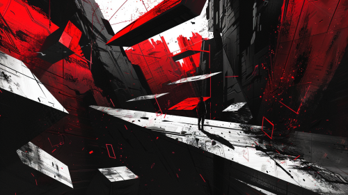 abstract background image, red, black and copper highlights, matisse flat papers, square, rounded corners, minimalist design, volumetric lighting, perspective --ar 16:9 --s 394 --upbeta --v 5.2