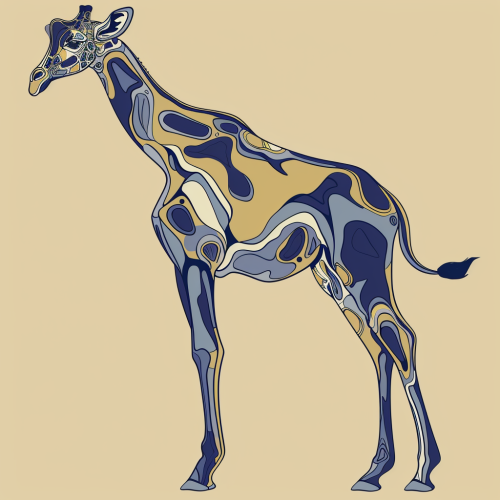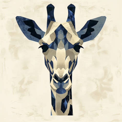 a full body illustration of abstract giraffe head with 2 tones indigo and beige, in the style of subtle surrealism, monochrome geometry, early medieval art, child-like innocence --v 6.0