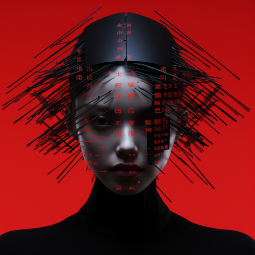 a black and red advertisement with a woman's head and news headings, in the style of international typographic style, zhang jingna, three-dimensional effects, modern and contemporary fashion design, brian sum, monochromatic geometry, li tiefu, red background, text iN LATIN