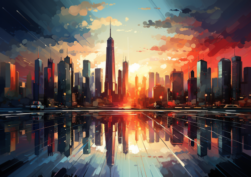 abstract illustration of city, pearly style, geometric shapes, elegant vibes, epic image, vivd colors, flat, inspired by Andy warchol, --ar 10:7 --v 5.2 --s 700