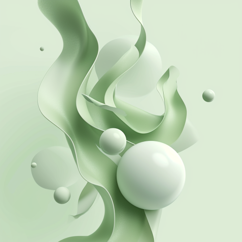 Abstract background with smooth shapes floating element with a modern 3d effect. use mainly the color #2DD881 and only green hues --v 6.0