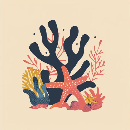 Coral and starfish, reimagined in minimalist abstract art cartoon logo