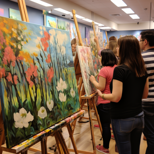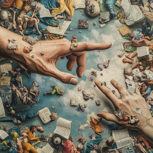 Michelangelo's Creation of Adam, but instead of adam, the arm is reaching toward a representation of all kinds of different art (music, painting, sculpture, writing)