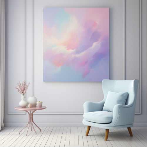 abstract art paint that evokes the emotion of happiness on pastel colors, cloud inspiration, smooth transitions, white background