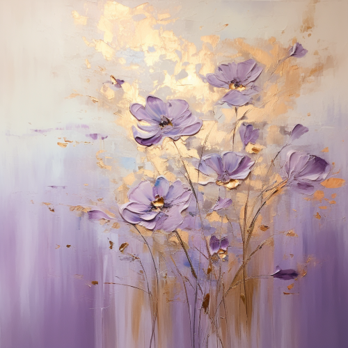 Oil painting of Flowers, minimalist abstract background, High - precision, Abstract Art, lavender, bronze