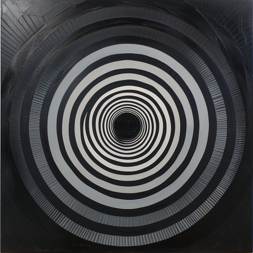 a Julian Stanczak painting with a black background transitioning from black to gray in the center in the op art style