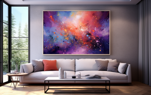 Abstract Painting of Milky Way Cosmos that is reminescent of a stormy sunset sky, beautiful landscape, stars, nebula and planets, soft lines, dark background, 60 x 40 inches, selling in famous museum and gallery, abstract painting, palette knife, paint drips, paint splatter, abstract, Leroy Nieman Style, --ar 8:5