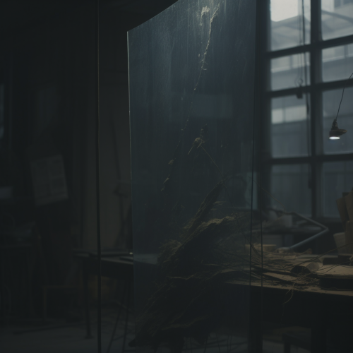 Modern abstract painting, a white cityscape of Glasgow skyline, light gray and bronze colors, thin lines, brush strokes, large canvas paintings, reflections on water, large shapes, a light silver background. --ar 64:33 --style raw --p lnu3cop